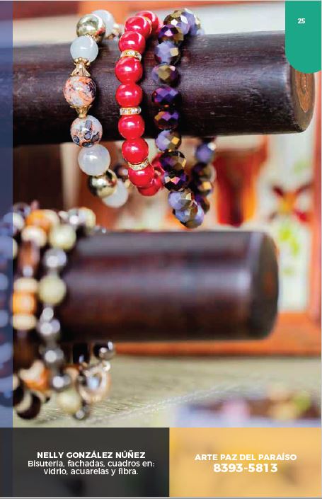 Bisutería, fachadas, cuadros en: vidrio, acuarelas y fibra.